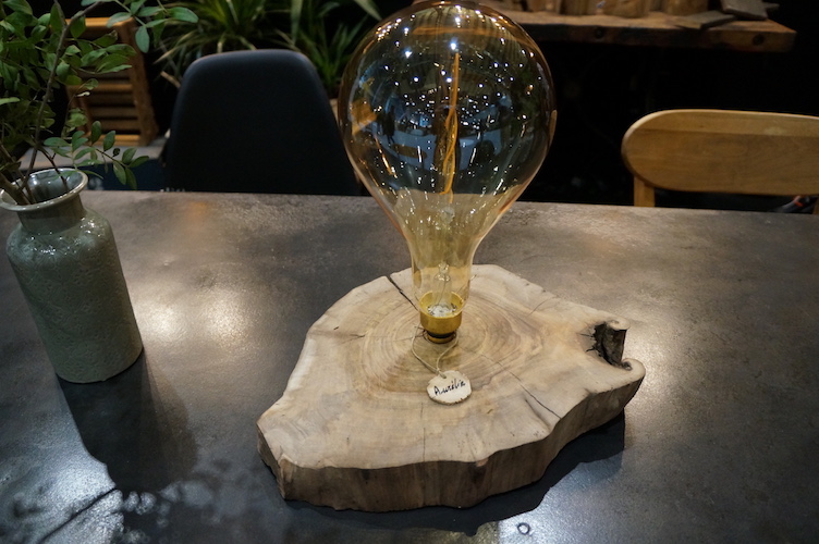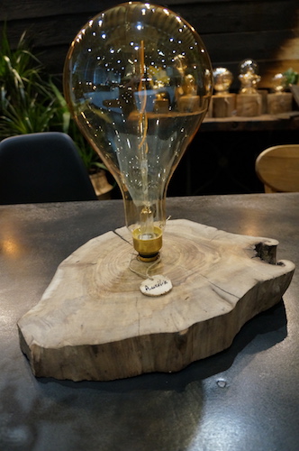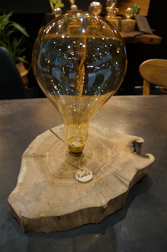 Lampe AURÉLIE. Globe vintage simplement vissé sur un socle de noyer